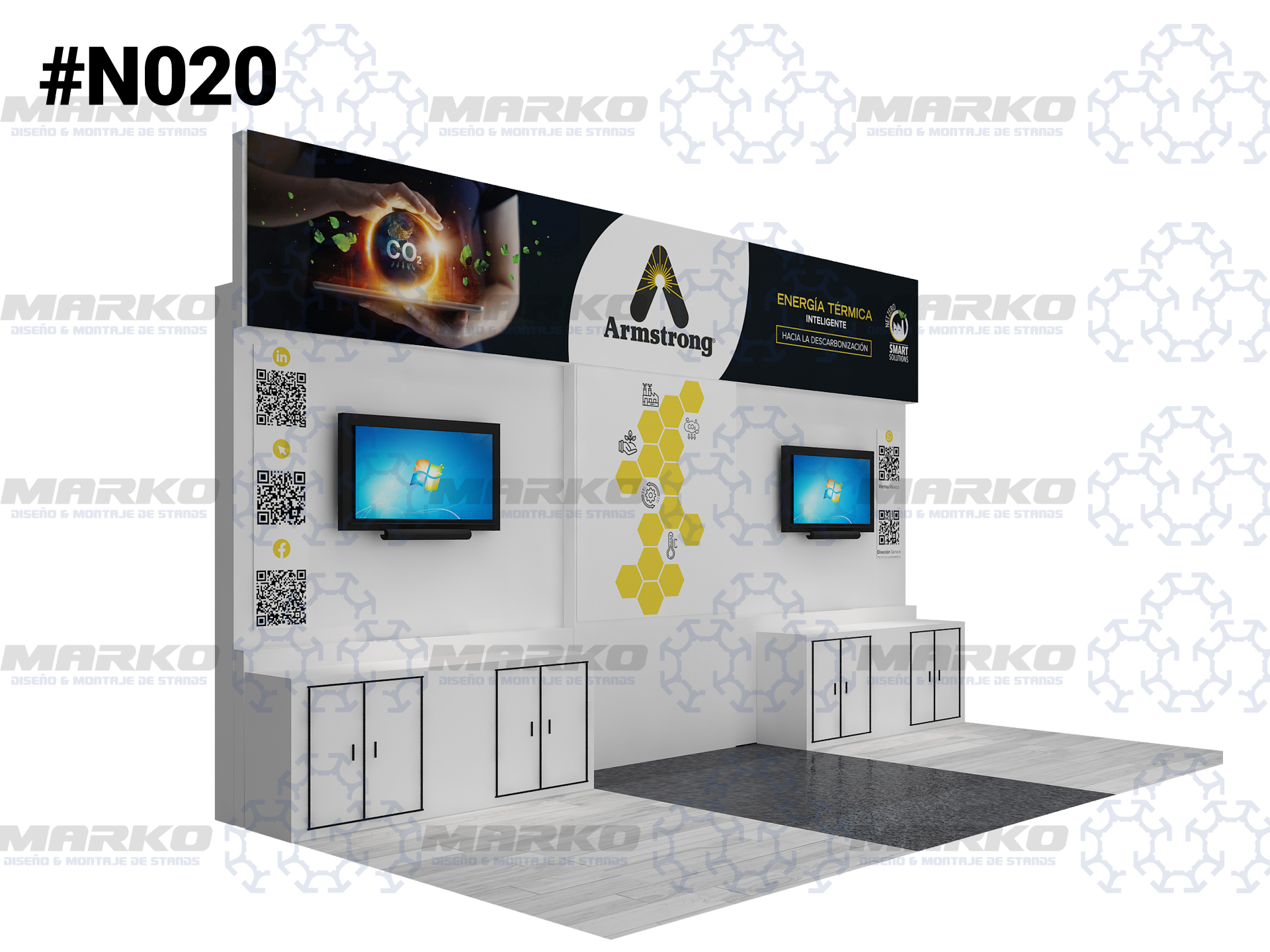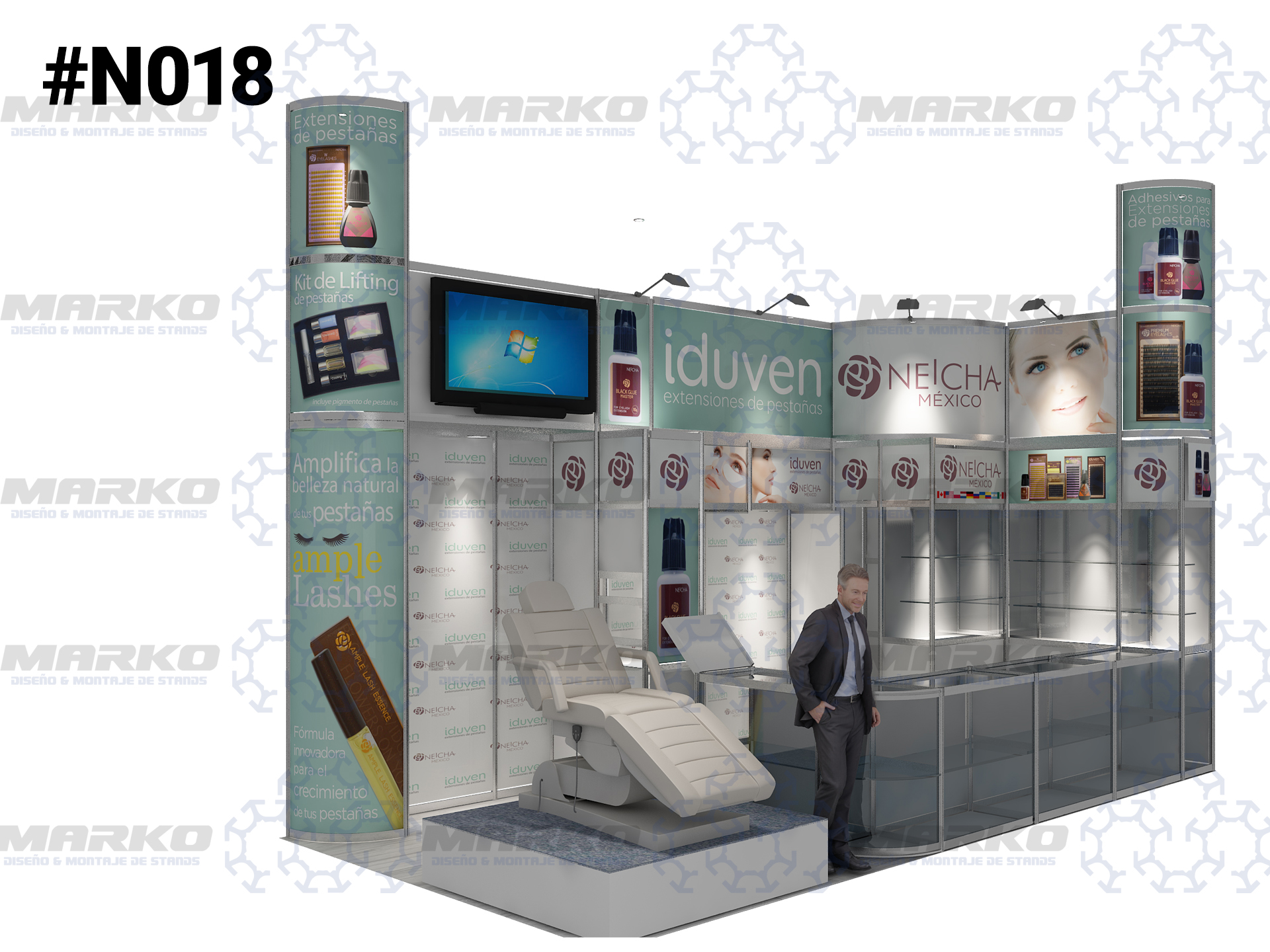 Estos diseños estan abiertos a cambios segun las necesidades de su empresa. Características y especificaciones especiales: -Tarima -Luz led -Alfombra -Pantalla LED -Logotipo en 3D con luz led
